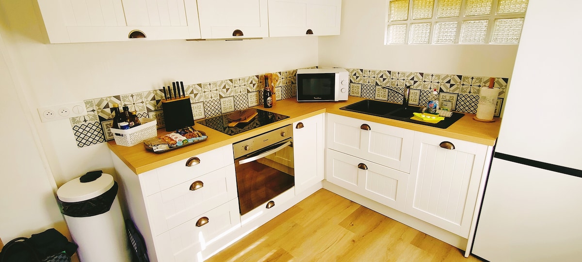 Venez vous ressourcer dans une atmosphère chic et contemporaine. ------------------------------- Tout est prévu afin que vous passiez un moment inoubliable avec des attentions particulières. ----------------------------- Au sous sol, une cave voûtée du XVe siècle a été spécialement aménagée en salle de cinéma avec un son immersif. Éclairage d’ambiance sans oublier un grand lit type hotel pour une expérience unique. ------------------------------ Place de stationnement privée à 5 minutes à pied.