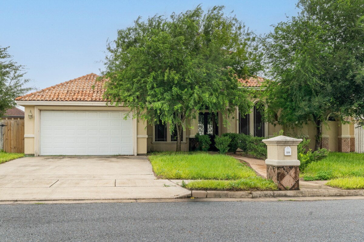 Willkommen in unserer unkonventionellen Wohnung, die nur wenige Minuten von Restaurants, Geschäften, Einkaufszentren, Filmen und dem Flughafen entfernt liegt. Direkt an der Grenze zu McAllen. Egal, ob Sie auf der Suche nach einem kurzen Wochenende oder ein paar oder Wochen sind, unsere 3BR 2BA Wohnung ist perfekt gelegen, um eine entspannte Zeit mit Ihren Liebsten zu genießen. In der Nähe von Gold's Gym, Costco, Target, Top Golf, Coffeeshops, nur 7 Minuten vom Einkaufszentrum La Plaza und dem Flughafen Mcallen entfernt. 2 Fernseher verfügbar! Im Wohnzimmer und im Hauptschlafzimmer. Grill