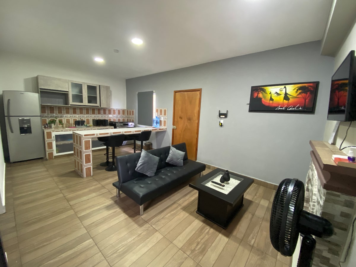 Genieße einen erholsamen Aufenthalt in dieser gemütlichen 1-Zimmer-Wohnung in Tulum. Umgeben von einem wunderschönen Garten bietet diese Unterkunft ein ruhiges und komfortables Erlebnis, ideal für Familien, Paare und Gruppen von Freunden.<br><br>Das Apartment verfügt über 1 Hauptschlafzimmer mit einem Kingsize-Bett und einem Schlafsofa, das genügend Platz für bis zu 4 Gäste bietet.<br><br>Genießen Sie einen erholsamen Aufenthalt in diesem gemütlichen Apartment mit 1 Schlafzimmer in Tulum.