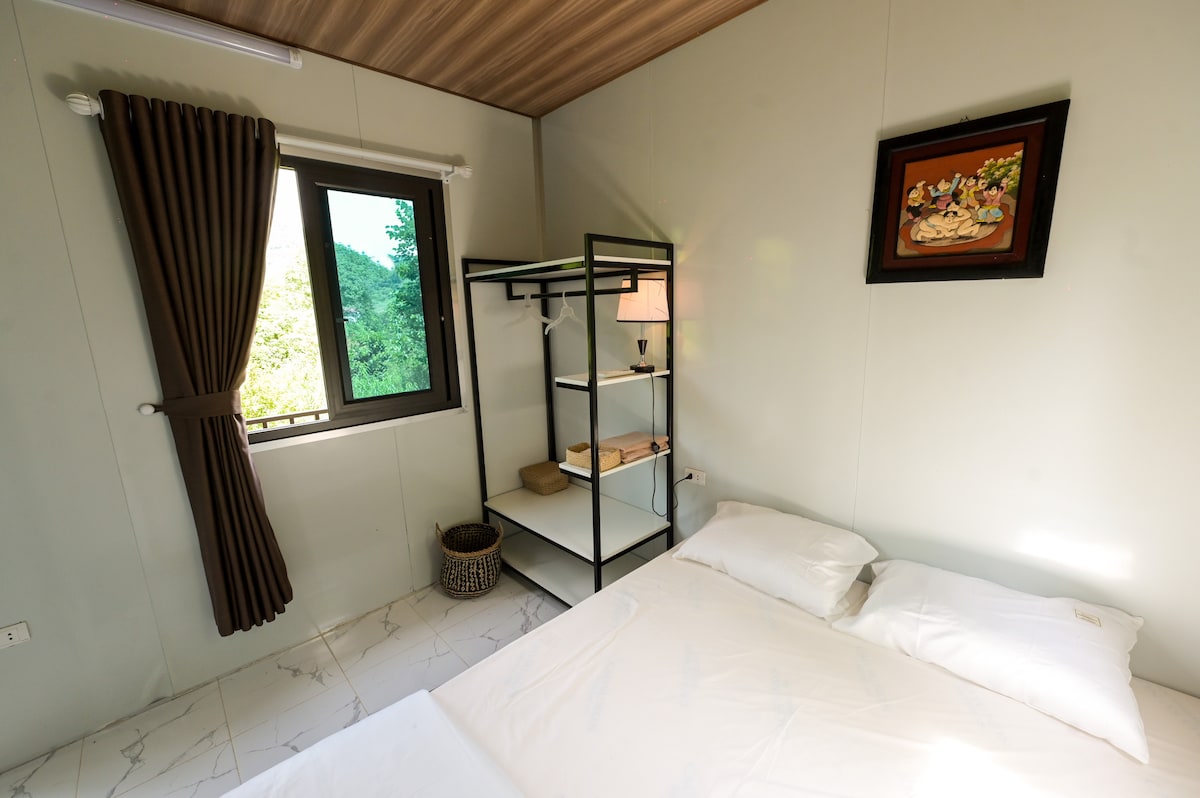 Haven - the farm house on the hill which is just 35 km far away from Hanoi possesses a view of 360 degrees with majestic mountains and lush greenery. The 3 sides of the house are transparent with glass walls. Each room or every corner in Haven has a completely different style, which gives anyone a lot of peacefulness. Room Bee & Ant is inside Villa Moon Song of the house.