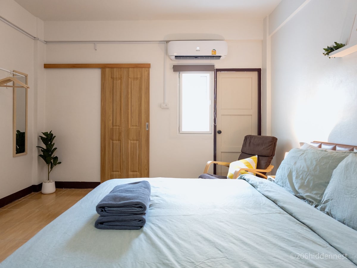 #206hiddenNest ist ein privates Zimmer in einer niedrigen Wohnung am lokalen Ort von BKK. Nachtmarkt in der Nähe und leicht mit dem Boot und Skytrain ins Zentrum von Bangkok zu gelangen. Diese Einheit befindet sich im 2. Stock (nur zu Fuß, kein Aufzug), außer vor dem Erdbeben ✓ Streetfood im Erdgeschoss ✓ 10 Schritte bis 7-11 ✓ 2 Minuten zum Nachtmarkt ✓ 10 Gehminuten bis zum Boat Service bis CTW. ✓ 5 Minuten Fahrt / 15 Minuten zu Fuß zum Rajamangala-Stadion ✓ 5 Minuten Mini-Truck-Taxi 8 THB/Fahrt oder 15 Minuten zu Fuß bis Sky Train (Yellow Line-Mahat Thai Station)