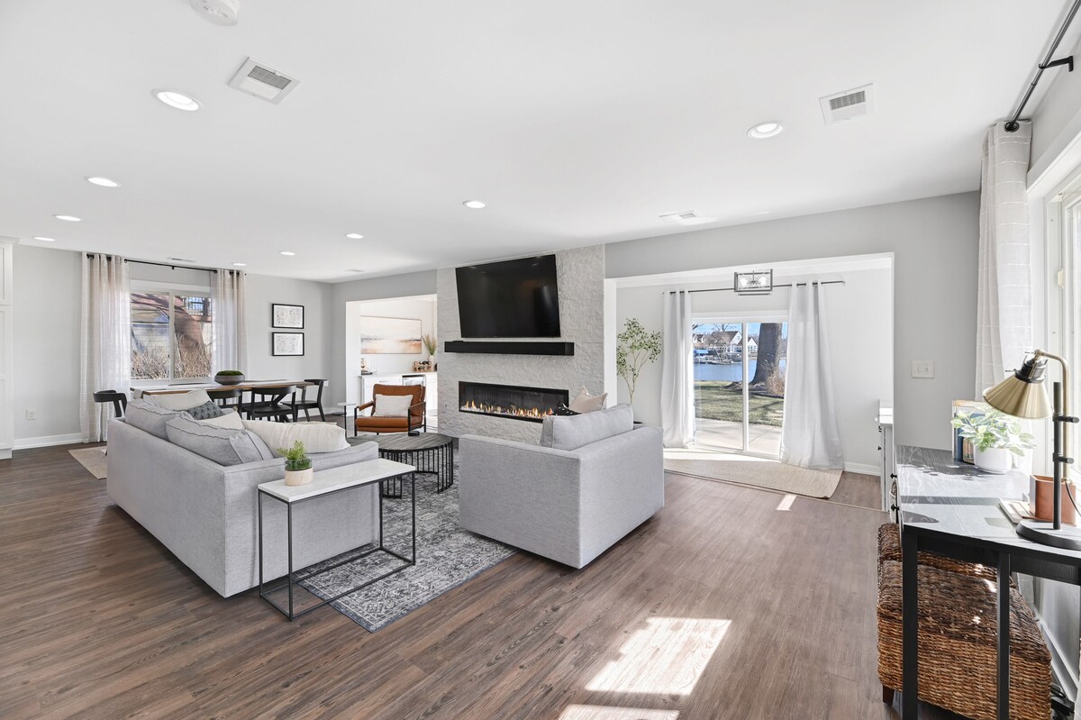 Mache dieses Haus mit 5 Schlafzimmern, 3,5 Bädern und einer unglaublichen Feuerstelle in Kenosha, WI, zu deinem Aufenthalt für einen großartigen Herbsturlaub. Perfekt für dein nächstes Familientreffen und/oder dein nächstes Urlaubstreffen für deine Gruppe oder deinen Kurzurlaub. Feuerstelle ideal für die kühlen Herbstnächte und perfekt zum Grillen von S'mores. Zu den unterhaltsamen Aktivitäten für Kinder und Erwachsene gehören ein Musikzimmer mit mehreren Instrumenten, ein Aufenthaltsraum im Keller und Genuss im Freien. Günstig gelegen, 2 Meilen vom Lake Michigan entfernt.