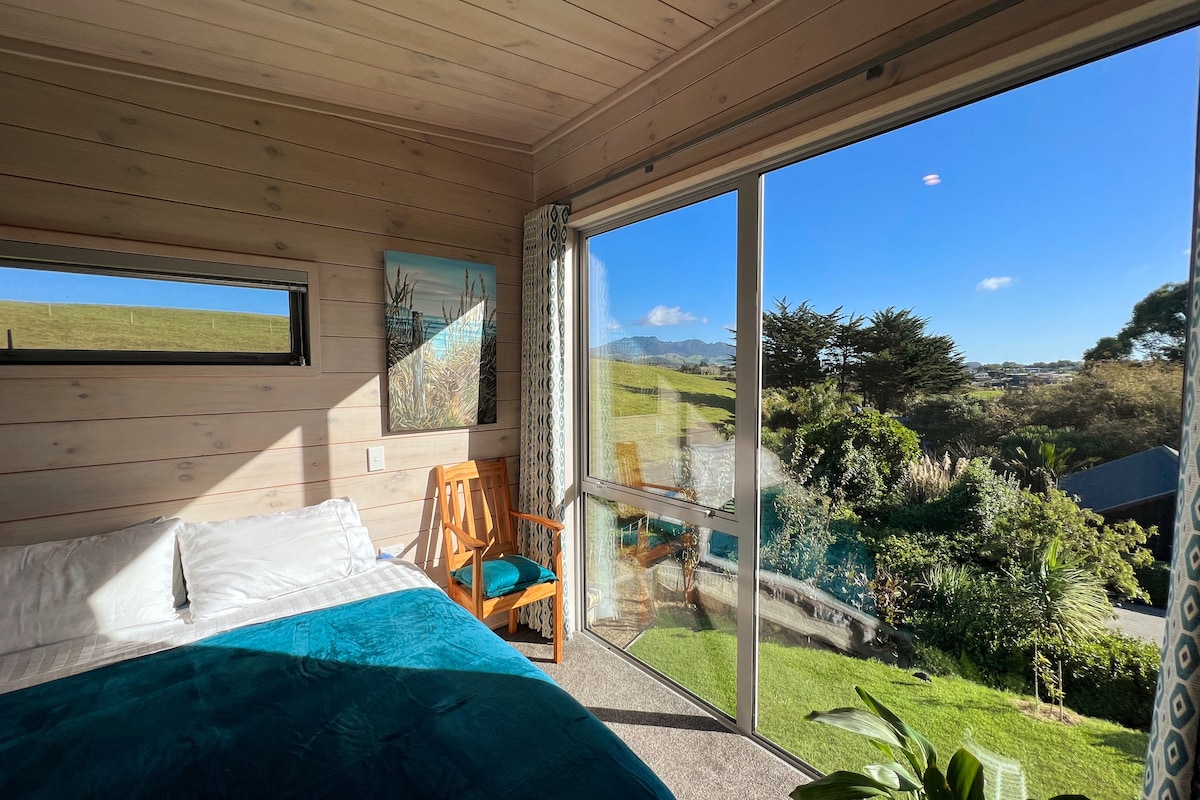Enjoy the valley views and birdlife on this organic property. The stylish room is private and sunny, perfect for a relaxing weekend. It is located next to a small reserve and the Waitetuna River. You can choose to explore the forest walks 5 mins drive away in Waitetuna Valley, sit beside the river on the reserve or take a small trip to Raglan and its surf beaches. The studio is just 15 minutes from Raglan and 30 minutes from central Hamilton and on the bus route.