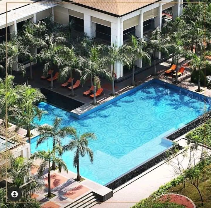 WLAN-fähig – gut eingerichtete, geräumige 600 Quadratfuß 1 BHK rund um einen Golfplatz. Die Wohnung befindet sich gegenüber dem Golfplatz, der Palmen-Terrasse, dem Resort und dem Pool – eine Aussicht von jedem der Zimmer. Das gut ausgestattete Erlebnis mit Annehmlichkeiten wie einer gut ausgestatteten Küche mit Grundbedürfnissen wie Tee/Kaffee, Besteck. Der 9-Loch-Golfplatz (Par 27) auf dem Grundstück ist für Gäste gegen Gebühr zugänglich. Nicht-Golfer können den Spaziergang rund um den Platz und die Uferpromenade genießen.