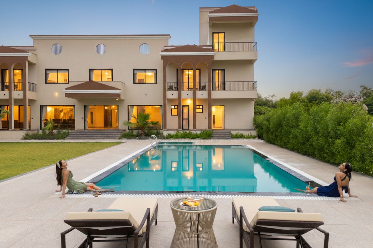 Ever imagined what it’s like to vacation like Jaipur royalty with your entire entourage in tow? Eleganza Resort turns that dream into a dazzling reality. A magnificent cluster of 3 villas with 4 rooms each along with a separate unit of 7 boutique individual rooms, this estate is not just a stay, it’s an entire experience carved out for grand reunions, corporate escapes, and picture-perfect celebrations.
