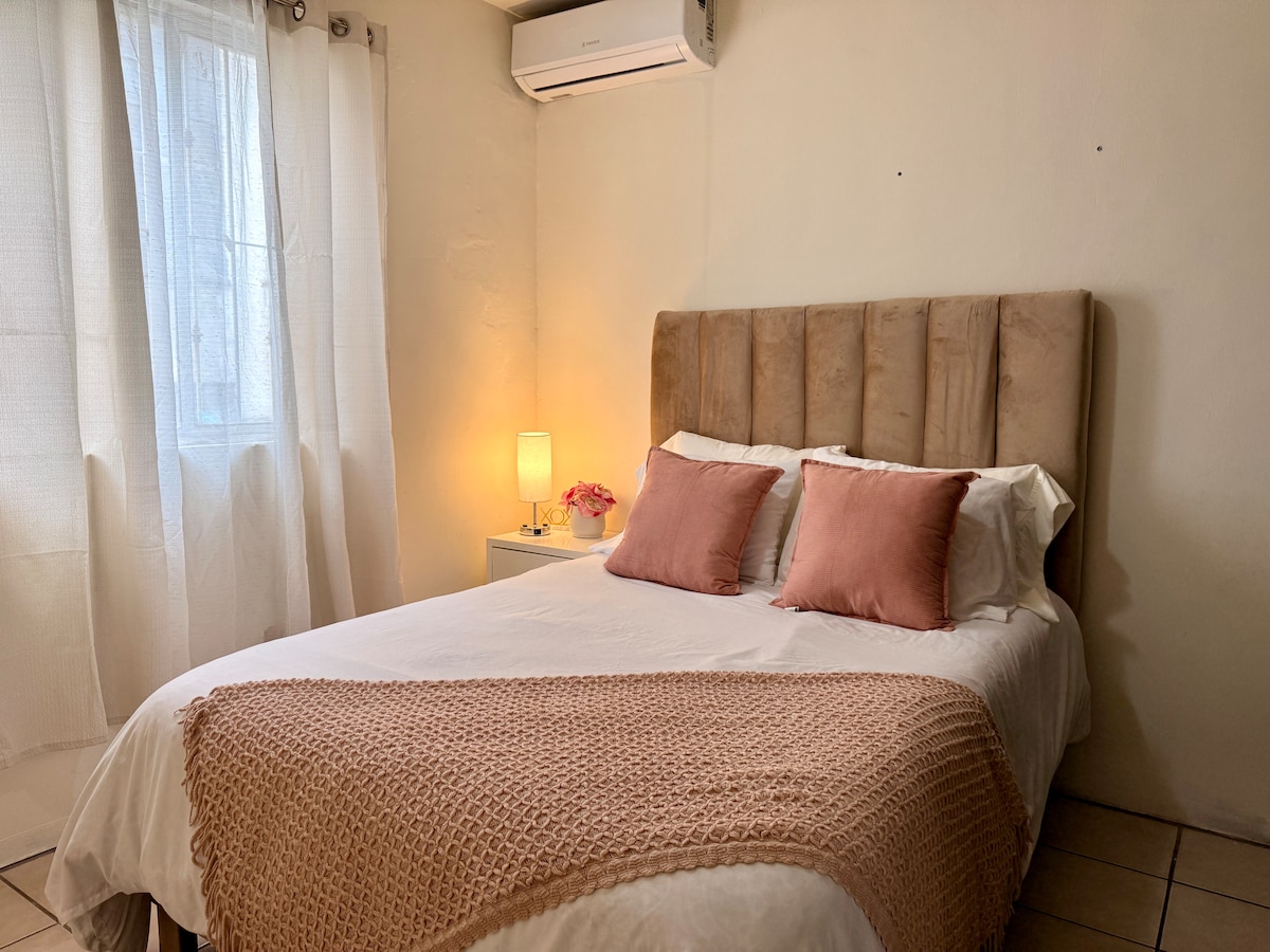Disfruta de la sencillez en este alojamiento tranquilo y céntrico en Santa María, Guadalupe. A pocos minutos del Estadio BBVA y cerca del icónico Cerro de la Silla, tendrás fácil acceso a la Plaza Arcadia. El Aeropuerto de Monterrey está a solo 30 minutos, lo que lo convierte en una opción ideal para parejas, viajeros de negocios o pequeñas familias que buscan comodidad y una excelente ubicación.