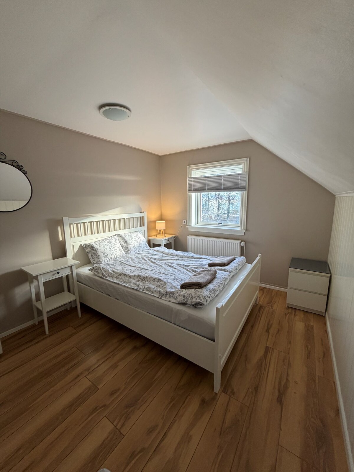 New and comfortable 26m2 guesthouse in beautiful Fljótshlíð, near Hvolsvöllur. Open studio with private bathroom, two beds that can be joined, and a corner sofa. Kitchen with AirFryer and stovetop, dining area, and washing machine. Quiet area with stunning views mountains e.g. ( Eyjafjallajökull ) and close to nature spot. Key box and free parking included.