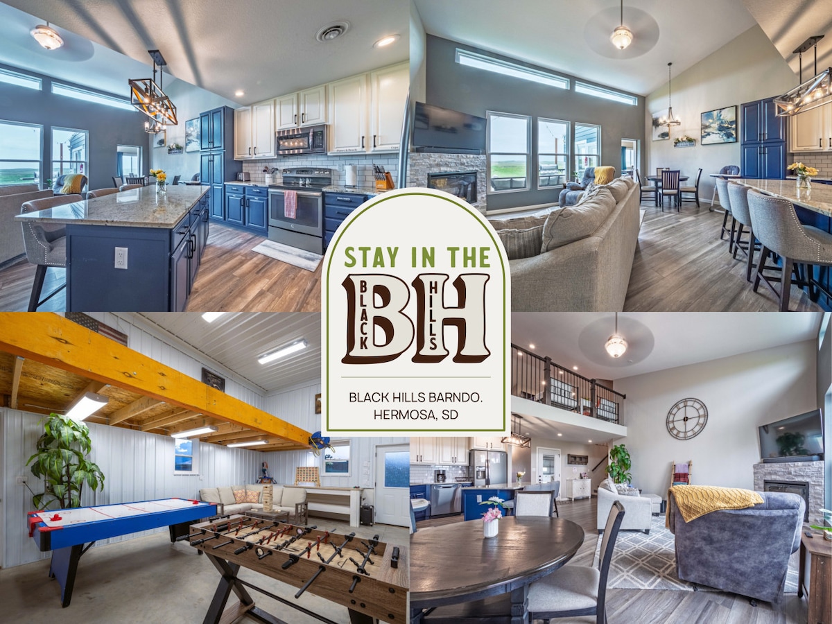 Our Bardominium is quite unique. It resides in the meadows of the Black Hills which sits on 3 acres of open space. You will certainly enjoy the majestic views surrounding our 2,000 sq. ft. home with an attached 3,500 sq. ft. heated warehouse. Within the warehouse for your fun, we have a pool table, stereo, drums, smart TV, electronic dartboard, pac-man video game, basketball hoop, soccer net, badminton, frisbee, sidewalk chalk & a nerf football. We have plenty of parking inside and outside.