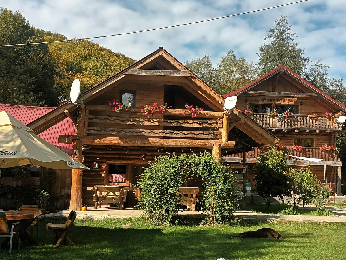 Un loc superb, retras în liniștea poalelor munților. Aer curat, o curte imensa , un lac in curte cu apa curgătoare de munte. In lac creștem păstrăvi , doua foișoare , În camere este o curățenie impecabila, lenjeria de calitate superioara, baile impecabile curate și funcționale, gazdele deschise și foarte prietenoase. Exista disponibile 4 camere in vila cu sufragerie . Bucătăria total utilata si a 5-cea camera este cabana mica separata cu baia . Ciubar si sauna contra cost .