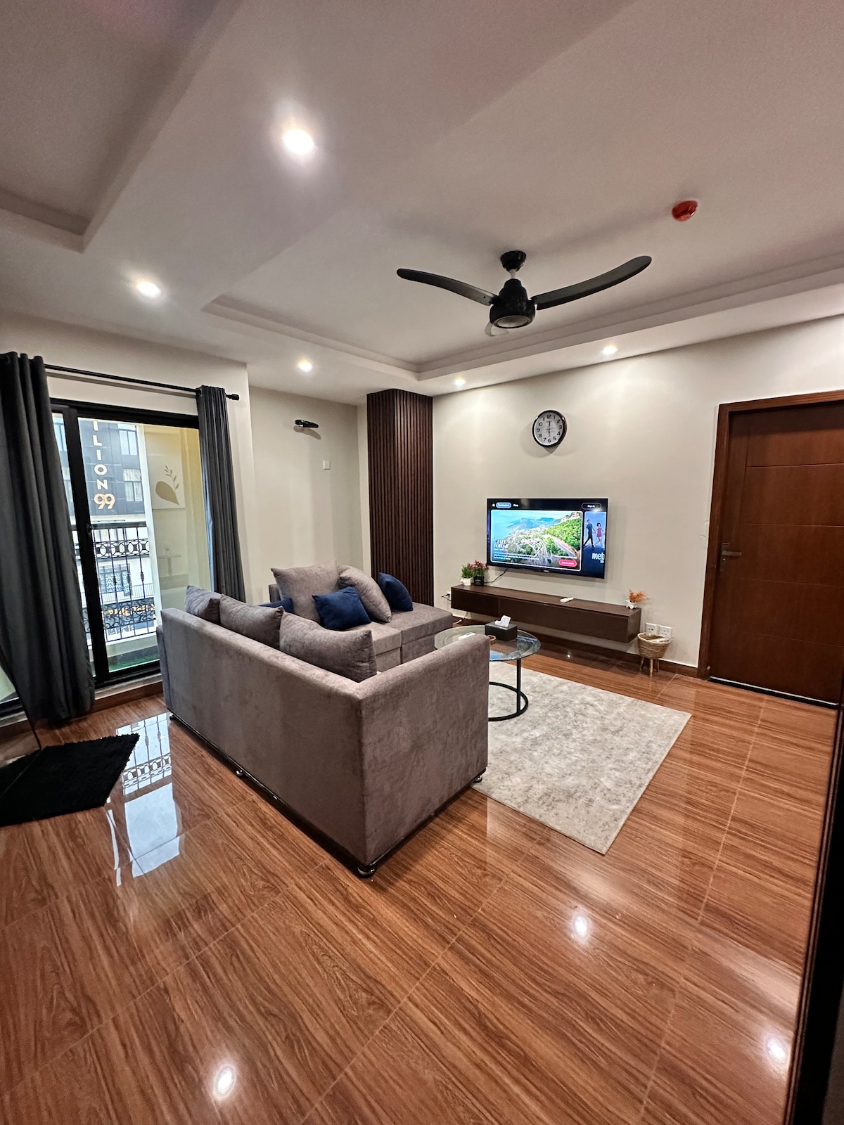 Designed with great care by an interior designer, The Black H comes with a spacious lounge and bedroom, huge 60" LED TV, 10-seater sofa, fully equipped kitchen and a distinctive decoration piece – an ibex's skull (Ethically sourced) – adding a rustic charm to the space. It is located in Bahria Heights 1 Block D, one of the most premium living standard maintained by Bahria Town. All major restaurants and cafes are close-by and building has 24/7 security