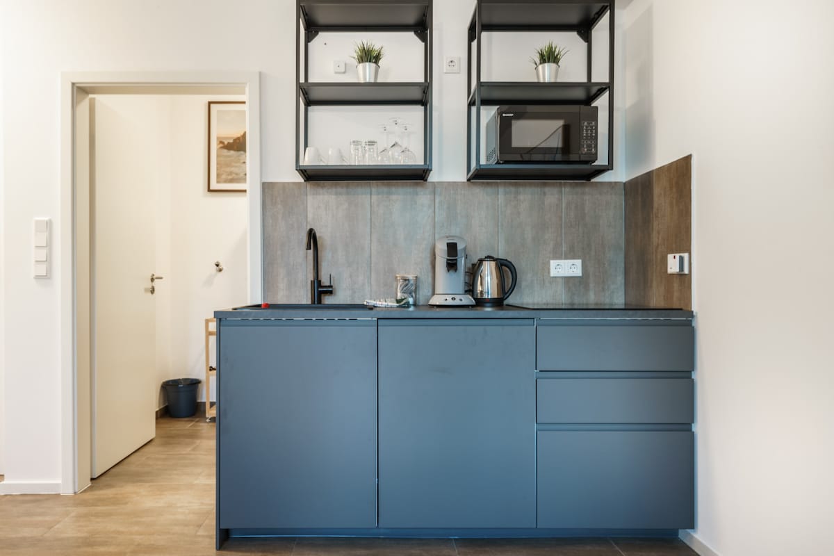 Das mit viel Liebe eingerichtete 2Z-Appartment bietet ein großzügiges Wohnstudio, das sich über eine sonnige Terrasse zum Garten öffnet. Bodentiefe Glasflächen sorgen für eine angenehme natürliche Belichtung. Wenn Sie vor die Gartentür treten, können Sie sich entscheiden. Rechts herum, dem Aaseeufer folgend, hinaus in die Natur, dort, wo die Aa immer ursprünglicher wird und in das Aatal zu Füßen des Teutoburger Waldes hinausführt. Oder links herum, auf einen Sprung in die Innenstadt.