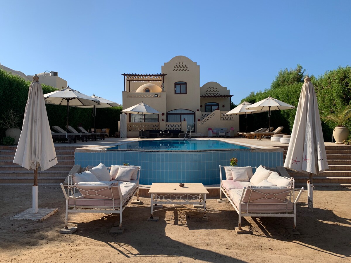 The ideal retreat to discover and enjoy El Gouna, the Red Sea and Egypt. Whether to escape from busy citylife or to enjoy all the Red Sea and the vibrant town of El Gouna has to offer, our 4 bedroom villa will provide the perfect getaway for your family and friends. Each bedroom has an ensuite bathroom with shower or bath. High speed WIFI, private parking, open plan livingspace and large fully equipped kitchen, large private garden and terras with private heated pool, jacuzzi, massage table