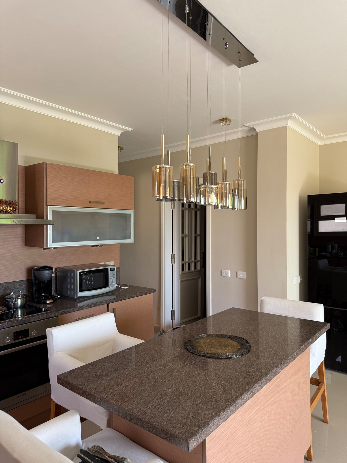 Enjoy with the whole family in this elegant residence, which consists of two bedrooms and a reception with a wonderful view of the sea and a swimming pool, where you can see the sea sleeping on the very comfortable bed or the sofa in the reception, calm with the beauty of the view is an important thing that makes you enjoy your time, and you can also relax on the balcony of the apartment where healthy sunlight is emitted from sunrise to sunset, and you can also relax on the pool on the ground fl