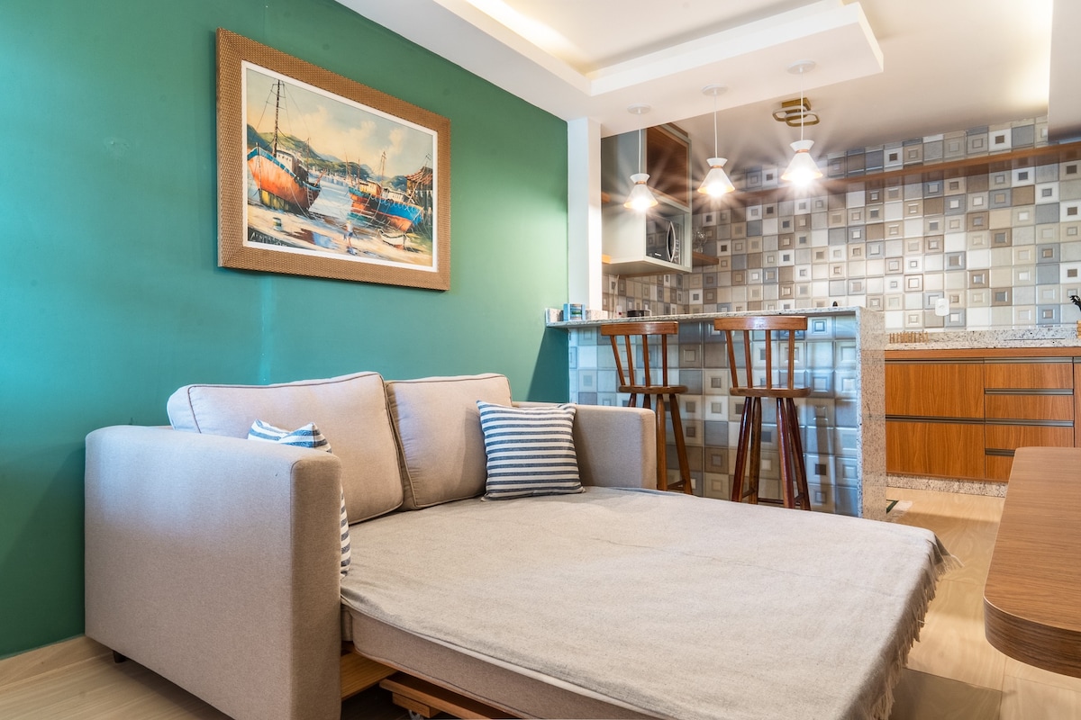 Confortável Flat, Ed. beira-mar c/ Piscina e hidro
