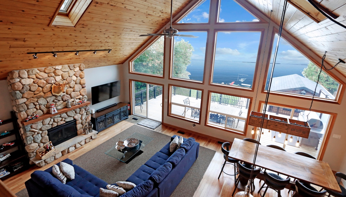 Unvergesslicher Familienausflug! Willkommen in unserem 7.700 Quadratfuß großen Familienparadies! Im Inneren gibt es Platz für alle Altersgruppen, um Spaß zu haben. Draußen genießt du unsere Uferpromenade mit sandigem Boden (felsige Küste, also bring bitte Wasserschuhe mit), einen riesigen Garten für Spiele und eine Winterrodelbahn. Mach es dir nachts am Feuer gemütlich und beobachte die Sterne oder tauche in den Whirlpool ein. Schaffe Jahr für Jahr bleibende Erinnerungen mit uns! ** Keine Hochzeiten oder Partys erlaubt **
