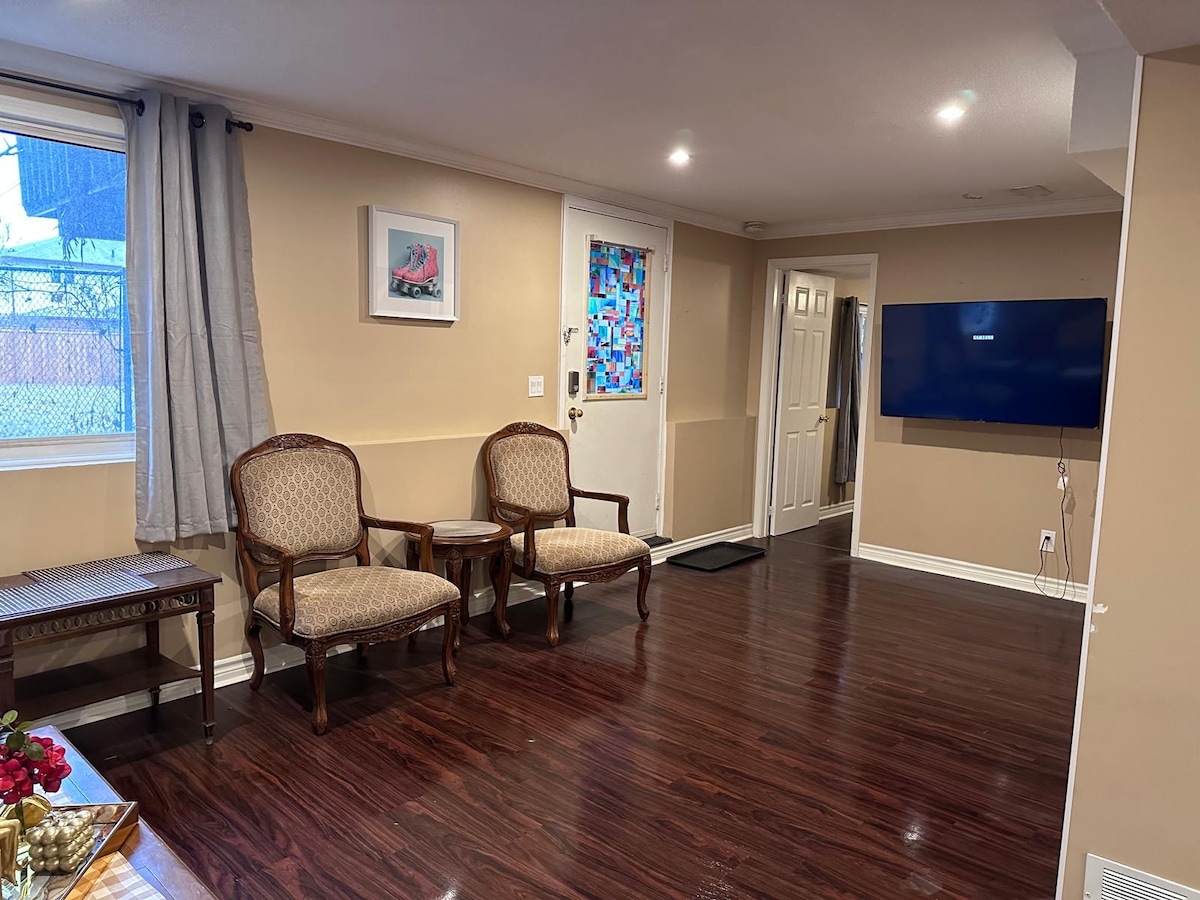 Willkommen in deinem ruhigen privaten Kurzurlaub nördlich der 401 in Whitby. Der Gast hat die gesamte Wohnung mit separatem Eingang für sich allein. Diese neu gebaute Wohnung ist mit einer voll funktionsfähigen Küche, einem Badezimmer, einem Wohnzimmer und einem Schlafzimmer ausgestattet. Die Wohnung verfügt über WLAN und einen 43-Zoll-Fernseher mit Amazon Prime TV-Diensten. Gäste haben einen ausgewiesenen Parkplatz an der Einfahrt. Bitte verzichte auf das Rauchen in der Unterkunft, Rauchmelder sind miteinander verbunden und sehr empfindlich.