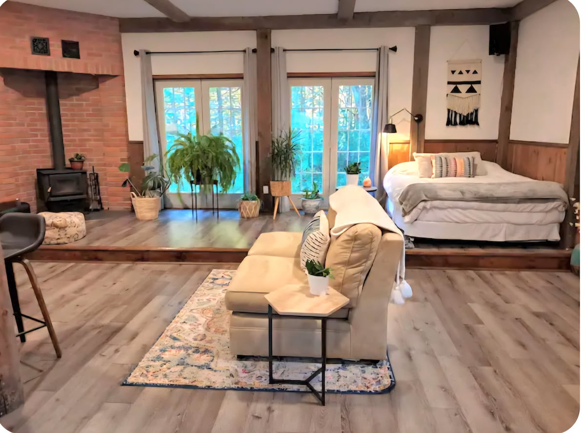Enjoy complete privacy with your own fully private guest house- designed for two. Cook meals in the full kitchen, hot chocolate by the fire, unwind in your private sauna, and soak in the hot tub under the stars in the nature. Tucked beside a tranquil creek, it’s the perfect place to relax. Close to: • Canadian Tire Motorsport Park (Mosport) • Brimacombe – skiing • Hiking trails& conservation areas • Biking paths • Snowmobile trails • Fishing • Antique shops