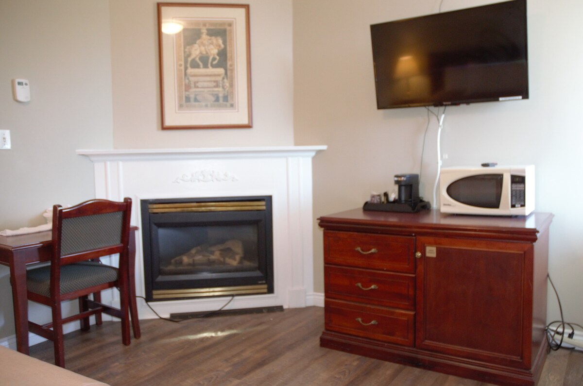 Die charmante Wohnung befindet sich an der Niagara-Schlucht und dem Whirlpool. Wir sind in Kanada. Wir bieten: - Kostenloses warmes Frühstück mit Wurst, Eiern, Haferflocken, Waffeln, Joghurt, Gebäck usw. - Kostenlose Parkplätze an der Unterkunft UND auf dem Parkplatz Clifton Hill - 24/7 Rezeption / Sicherheit - Luxuriöse Sealy-Taschenfederbetten und -Bettwäsche - Gemeinsam genutzte Sauna und Schwimmbad (20' X 40') - hochwertige Bettwäsche - 15 Gehminuten zum Niagara GO/Busbahnhof, Innenstadt, University of Niagara Falls - gemütliche und kompakte Einheit (300 -400 Quadratfuß)