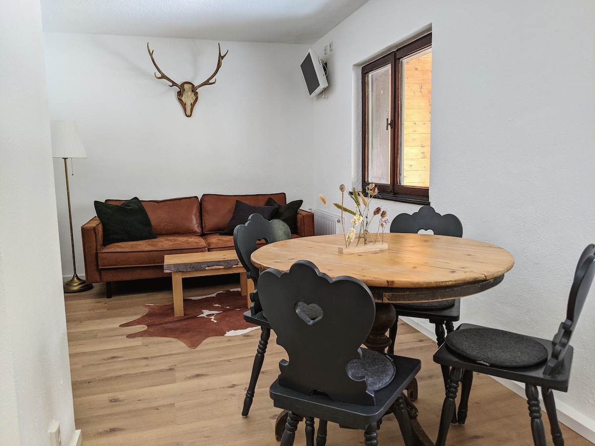 Erleben Sie unvergessliche gemeinsame Momente mit der Familie, Kinder oder Freunden in den Bergen, in der Natur, inmitten herrlicher Seen , hier findet jeder seinen Platz. Frühstück kann nebenan gebucht werden. Bäcker, Geschäfte sowie das Hallenbad mit Sauna und Bahnhof sind in wenigen Minuten zu Fuß erreicht. Wanderwege und Radtouren starten vor der Haustür. Entspannen Sie am gemütlichen Kamin oder auf der großen Balkonterrasse mit Panoramablick - E-Ladestationen am Haus -