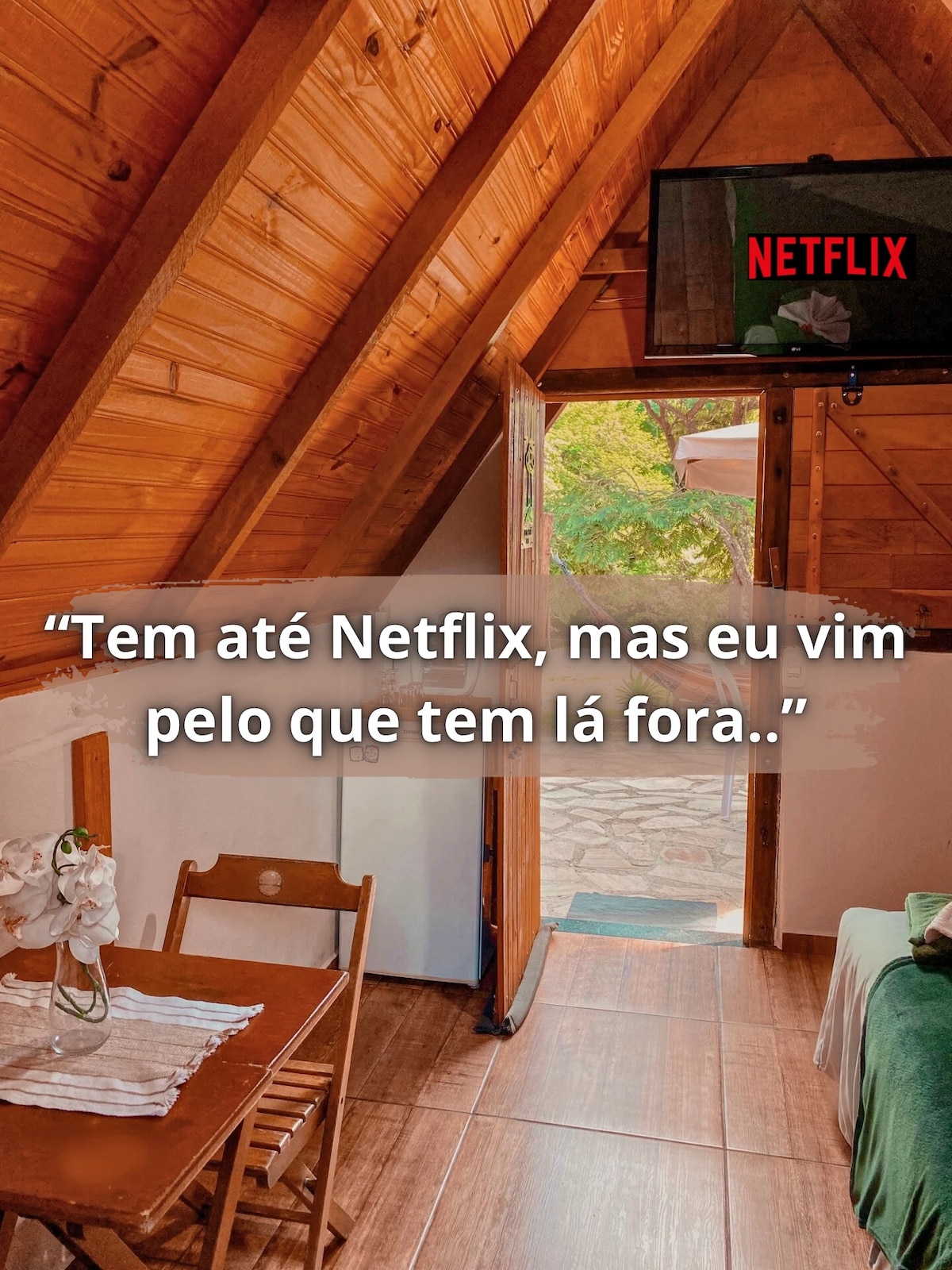 Chalé com Ar condicionado, Wi Fi Starlink, TV com Netflix aberta, frigobar, roupa de cama e banho completas.