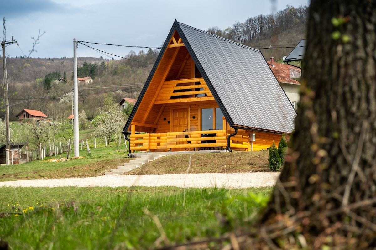 Übernachte in unserer gemütlichen A-Rahmen-Hütte, die in den Hügeln nur 3 km von der M20-Straße in Tjentište, direkt im Nationalpark Sutjeska, liegt. Sie befinden sich auf dem Weg nach Maglic, dem Urwald von Perućica und dem Trnovačko-See, ideal für Wanderer und Naturliebhaber. Die Hütte bietet Platz für 2-4 Gäste (plus ein Sofa für einen 5.), mit eigenem Bad, Küchenzeile und kostenlosen Parkplätzen. Ein lokales Restaurant (Outdoor Tara) ist nur 50 m entfernt und serviert den ganzen Tag hausgemachte Mahlzeiten. Kein WLAN – nur Vögel, frische Luft und eine atemberaubende Aussicht.