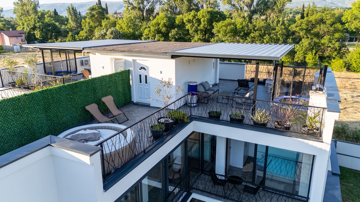 Die Villa River liegt 20 Fahrminuten von der Altstadt und dem Stadtzentrum von Mostar entfernt und bietet einen luxuriösen Rückzugsort in einem ruhigen, grünen Viertel. Die Villa verfügt über einen Pool mit Liegestühlen, einen Whirlpool und eine Sauna für ultimative Entspannung. Es bietet Platz für bis zu sechs Gäste in drei Schlafzimmern. Die Unterkunft verfügt zudem über kostenlose private Garagenparkplätze, die Komfort und Komfort für alle Besucher gewährleisten.