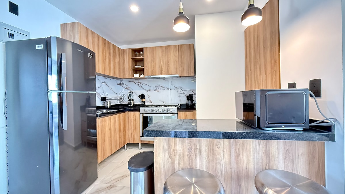 Der beste Ort, um im magischen Dorf Bernal zu übernachten, ist unsere schöne Zwei-Zimmer-Wohnung. Sie hat ein minimalistisches Design, das die charakteristischen Materialien und die Flora der Region mischt, um eine angenehme Atmosphäre zu schaffen, die immer von der Peña de Bernal eingerahmt wird, da sie so ausgerichtet wurde, dass sie die beste Aussicht auf den Monolithen hat. Wir befinden uns im Zentrum der Stadt, es ist perfekt, um sich zu Fuß fortzubewegen. Wir haben jederzeit Überwachung und die beste Terrasse.