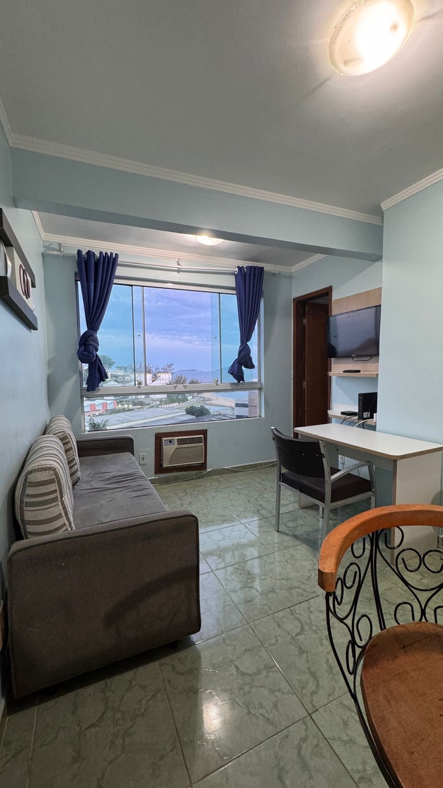Prédio de frente para a praia, com uma linda piscina no topo e uma vista espetacular do mar. Apartamento conta com ar-condicionado, TV e uma copa com frigobar, micro-ondas, cafeteira, sanduicheira, pratos, copos, talheres, xícaras e pires. O espaço inclui ferro e tábua de passar, secador de cabelo, uma varanda e uma bancada de trabalho. Acomoda até duas pessoas, oferecendo cama queen e sistema de água quente central. Roupa de cama e banho inclusas, exceto toalhas de rosto