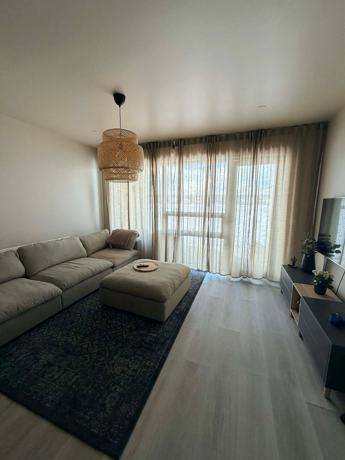 Moderne Wohnung für 4 Personen in einem Neubau mit 2 Schlafzimmern, einem geräumigen Wohnzimmer und einer voll ausgestatteten Küche. Genieße ein Badezimmer mit Badewanne und Dusche sowie einen separaten Hauswirtschaftsraum mit Waschtrockner. Privater markierter Parkplatz inklusive. Ruhige Lage mit guter Anbindung an die öffentlichen Verkehrsmittel, Geschäfte – perfekt für kurze oder lange Aufenthalte.