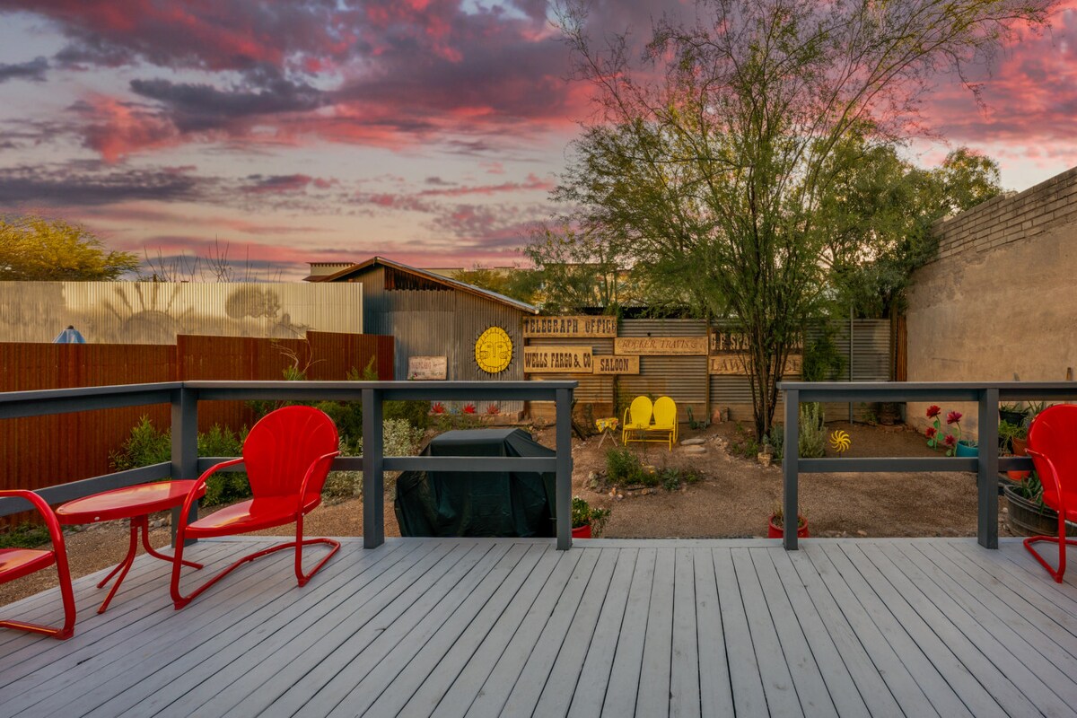 Cimarrones ist ein historisches Anwesen im Herzen von Tucsons charmantem Barrio Viejo. Das Gebäude wurde 2021 komplett renoviert und ist jetzt ein Duplex, wobei Cimarrones der malerischen Straße zugewandt ist. Während der Charme der historischen Elemente – die dicken Lehmwände, hohe Decken mit Holzbalken, Ziegelpflasterböden – erhalten geblieben ist, wird eine selektive Auswahl an luxuriösen, modernen Annehmlichkeiten, Einrichtungsgegenständen und Oberflächen deinen Aufenthalt äußerst komfortabel machen. Arizona TPT-Lizenznummer 21469803