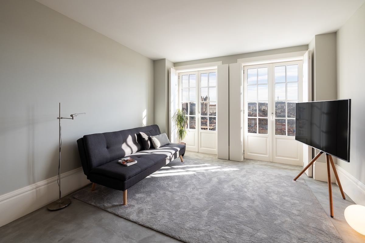 Imagine returning to your refuge apartment & balcony with magnificent panoramic views of the 12th-century Cathedral, its old houses and Douro River, enjoying a Porto Wine glass after exploring the city. In the morning, feel the privilege to awake with an amazing sunrise during your coffee breakfast. Retreat to the serenity of your cozy bedroom, with a high-quality queen-sized bed and premium linens. Discover the historic Estremoz Marbles decorating your modern fully-equipped kitchen & bathroom.
