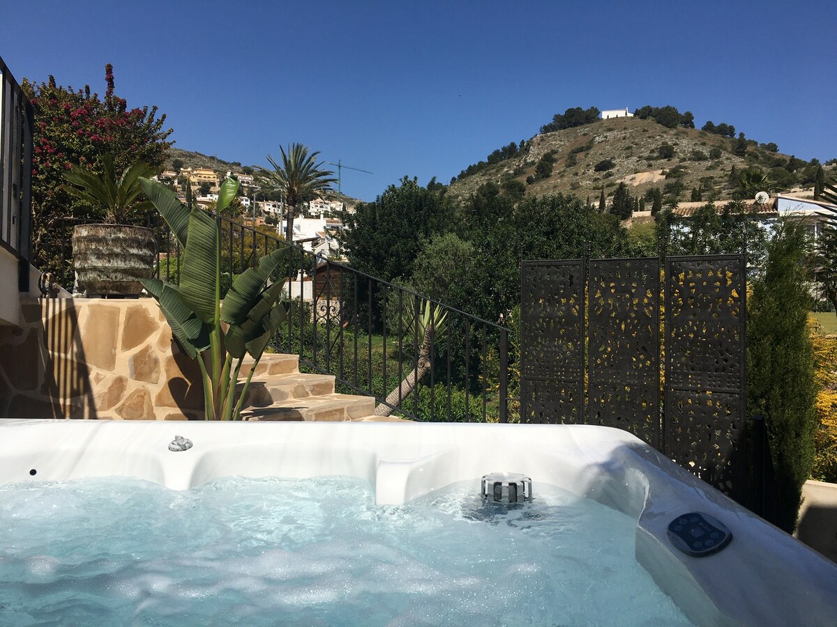 Genießen Sie einen stilvollen Urlaub an der Costa Blanca! Masía del Barranco ist eine Finca, die in 2 unabhängige Wohneinheiten unterteilt ist. Entspannen Sie sich in Ihrem privaten, beheizten Spa-Jacuzzi mit Blick auf den Naturpark "Montgo". Nur wenige Gehminuten von der historischen Stadt Xàbia entfernt. 2 Fahrräder vorhanden! Strom, Wasser, Gas, Internet, Heizung, TV Sat. -Für Sommernächte Airco in den Schlafzimmern enthalten! Parken auf der Straße am Eingang.