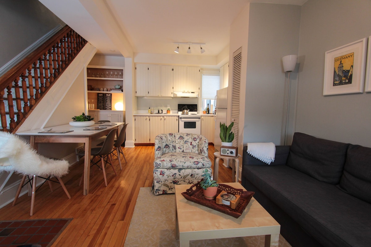Diese neu renovierte Suite mit 2 Schlafzimmern befindet sich in einer ruhigen und dennoch zentral gelegenen Straße, nur wenige Schritte vom Kanal, Restaurants, Cafés, Bus/U-Bahn und allen Sehenswürdigkeiten entfernt, die Kanadas Hauptstadt zu bieten hat. Parke dein Auto in unserer privaten Einfahrt und radle oder gehe (oder Schlittschuh im Winter!) entlang idyllischer Flusswege ins Herz der Stadt. Genieße im Sommer deinen morgendlichen Bio-Kaffee und lausche den Vögeln auf der Hinterhofterrasse. Im Winter kannst du es dir vor deinem eigenen Gaskamin gemütlich machen.