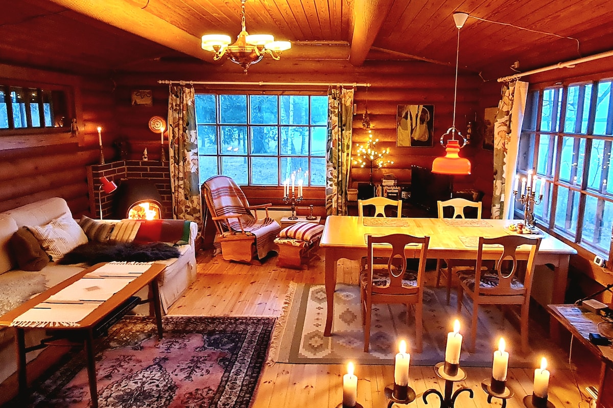 The cottage is located on a large 3.5-hectare lot in a secluded area surrounded by small ponds. You can enjoy the gentle heat of the wood sauna and then relax in the warm water of the hot tub. At sunset, you can see moose, deer, and other forest animals grazing in the nearby field from the terrace. You can also head to the nearby forests to pick mushrooms and berries and prepare dinner from them. Small pets are allowed!