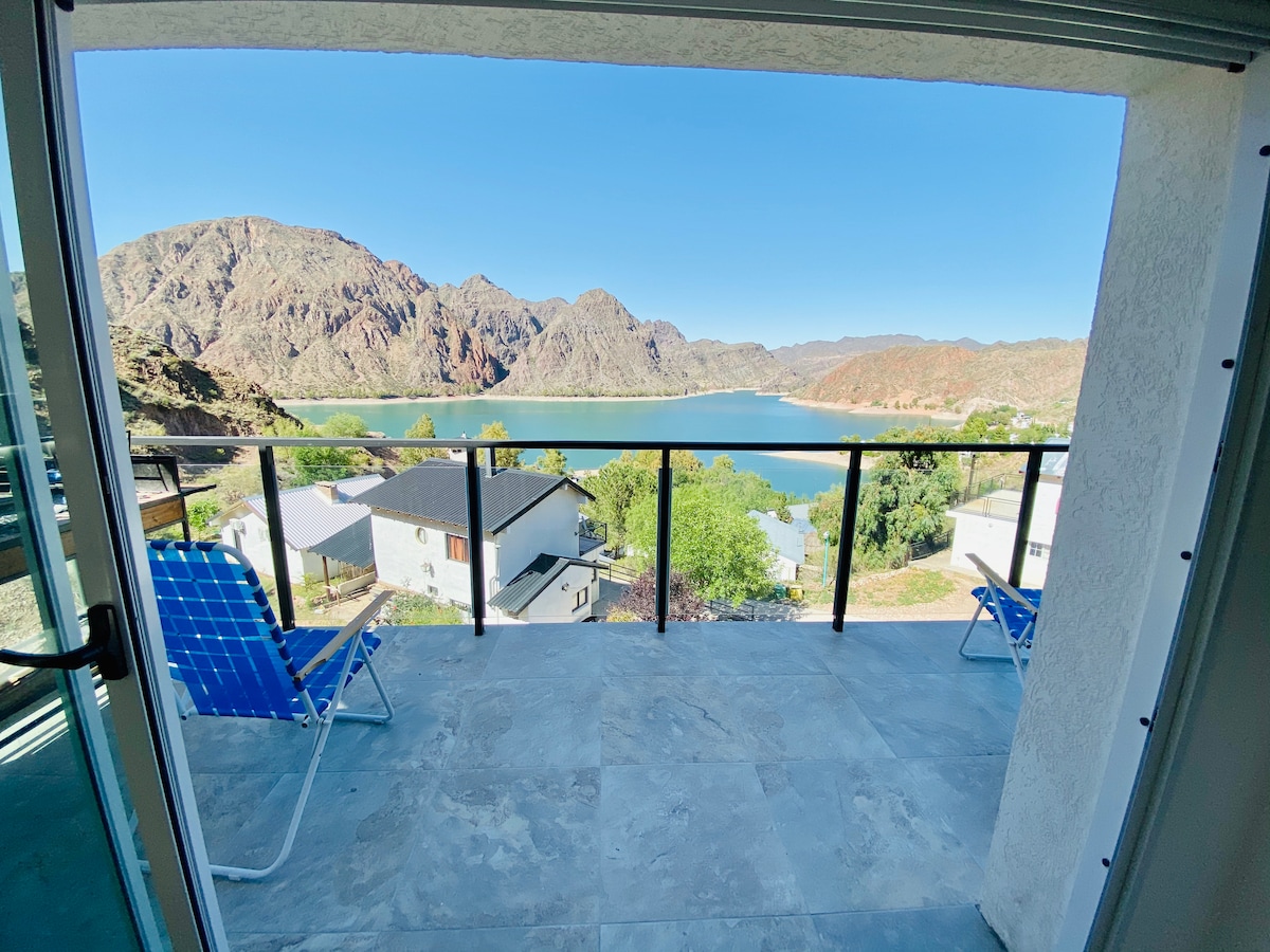 ¡Bienvenidos a la exclusividad de Vista Lacustre! Nuestra suite, ubicada en Los Reyunos, San Rafael, Mendoza se sumerge en el hermoso paisaje natural, donde el lago y las montañas crean el escenario perfecto. Disfruta de intimidad, armonía y comparte risas en esta suite ideal para vacacionar, donde la tranquilidad se fusiona con la belleza haciendo cada momento inolvidable. El Club cobra una entrada por persona por día. Menores de 10 años gratis. Esta entrada será abonada por el huésped.