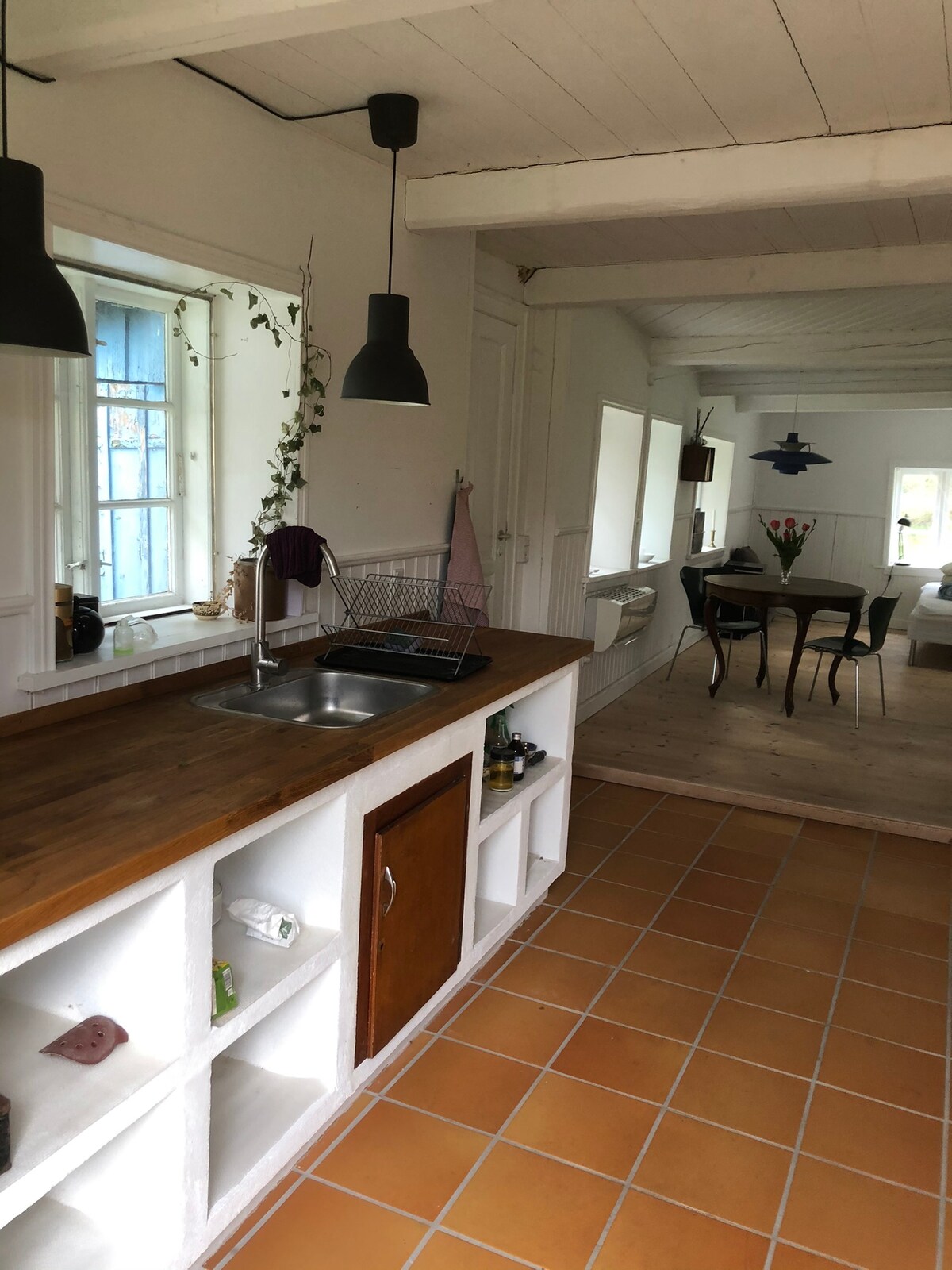 Gemütliches Studio-Apartment mit einem Schlafzimmer und privatem Eingang. Helles, luftiges Zimmer von 30 m2 in Fliesen mit sichtbaren Balken sowie geräumige Eingangshalle mit Kleiderschrank. Privates WC und Badezimmer. Bodenheizung im gesamten Apartment. Kochnische mit Geschirr, Kühlschrank (kein Gefrierfach), Mikrowelle, Heißluftfritteuse und Wasserkocher. Parkplatz direkt vor der Tür. Kleiner Gartentisch mit zwei Stühlen zwischen Pflanzgefäßen und Nachmittags- und Abendsonne. Das Haus befindet sich an der Hauptstraße von Sorø in einer 40 km/h-Zone.