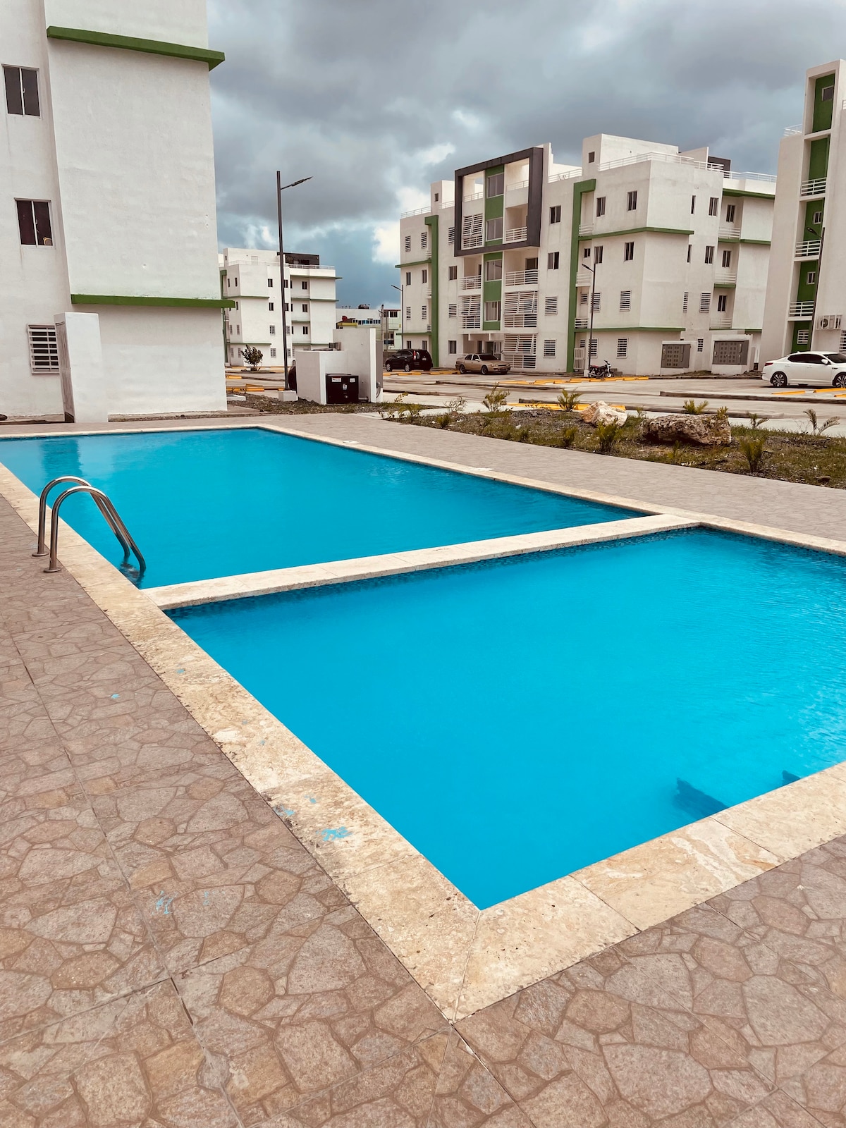 Capture a glimpse of Bani, Dominican Republic! This stylish unit features: 3 bedrooms, 2 bathrooms, dining area, full kitchen with appliances. The apartment is located in a private closed community with 24hr security surveillance, parking spot and a beautiful outdoor pool. Brand new AC units in the bedrooms as well as an in unit washer and dryer. High Speed WIFI and Many storage/ closet spaces are available. * Children must be supervised by adults when using the pool area.