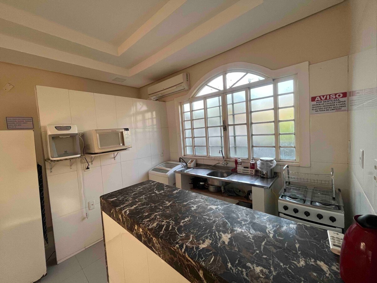 KOMPLETTES HAUS MIT KLIMAANLAGE IN ALLEN RÄUMEN!!! Kommen Sie nach Aruanã, ohne Haushaltsgeräte oder Bettwäsche mitnehmen zu müssen! Ruhiger Ort zum Ausruhen, gut gelegen, mit einer Eisdiele nebenan, einem Supermarkt und einer Apotheke auf der linken Straßenseite, einem Sandwich-Laden und einem Spielplatz buchstäblich gegenüber). Außerdem ist es 200 m vom Fluss und dem Platz mit Restaurants und Touristenattraktionen entfernt! Ein gemütlicher Ort, der Sie willkommen heißt! Viel Spaß!