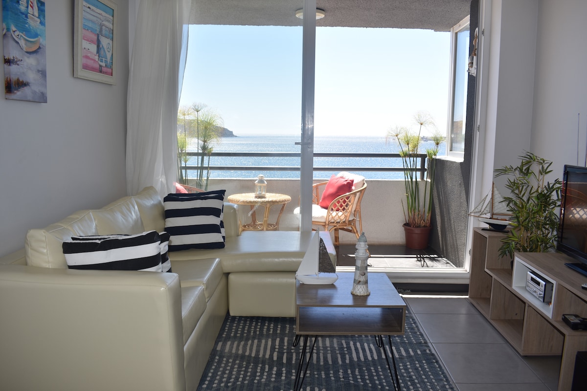 Wohnung in der Region Coquimbo, gegenüber der Bucht La Herradura, mit direktem Zugang zum Strand, der die Eigenschaft hat, keine Wellen zu haben, in der Nähe von Supermarkt, Tankstelle, öffentlichen Verkehrsmitteln und Touristenattraktionen wie dem Cruz del Milenio, dem Strand Totoralillo, der Stadt La Serena, dem Fischereiterminal, kulturellen, sportlichen und gastronomischen Attraktionen und vielem mehr.