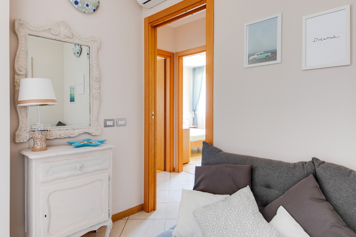 Modernes Studio komplett renoviert mit Küchenzeile, großem Bad und separatem Waschbereich. Großer gemeinsamer Innenhof mit Fahrrad- und Motorradunterstand, Gartentisch/-stühlen, Sonnenschirm. Komplett mit Smart-TV, Klimaanlage und WLAN. 5 min zu Fuß vom Meer entfernt, in einem Wohnviertel gelegen, mit reichlich kostenlosen Parkplätzen auf der Straße. In unmittelbarer Nähe befinden sich Bushaltestelle und Metromare (50 m), Restaurants/Pizzerien, Bars, Bäckerei, Markt, Bank. Ideal für Paare oder Freunde.
