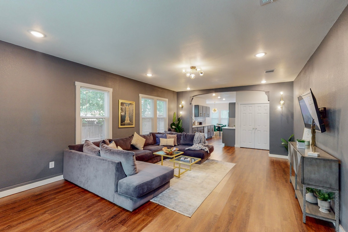 ☆ We are 2-year Superhosts and always striving for 5-star service! ☆ SINGLE STORY - 1543 Sq Ft Modern Home ☆ Cul-de-Sac home ☆ Private, Heated Jacuzzi ☆ Easy Self Check-in w/ Keypad ☆ Private, Fully Fenced Backyard ☆ 65” HDTV Smart TV/ Netflix, Hulu, Prime Video, Disney+ and more (just log in) ☆ HDTV's in Every Bedroom! ☆ Fast Wifi (495 Mpbs) ☆ High Ceilings ☆ 3 Queen Size Bed/2 Full Bathrooms ☆ Custom Guidebook w/ Local Recommendations and Tips ☆ Clear Host Communication ☆ Sparkling Clean Home