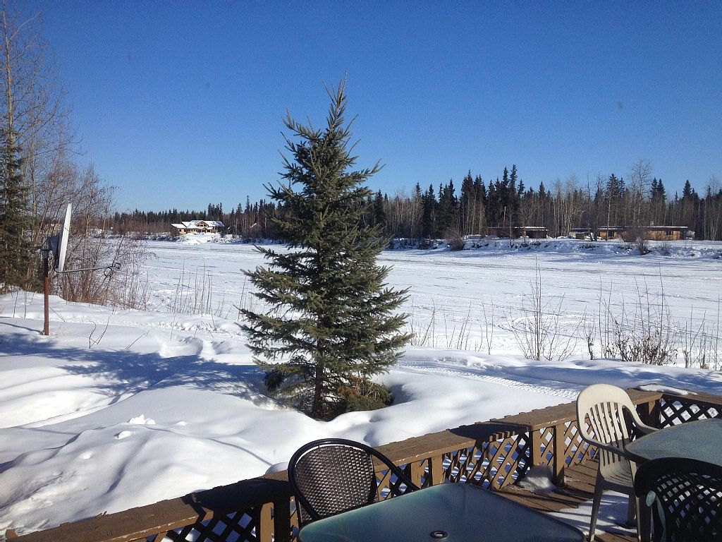 Unser Haus befindet sich am Ufer des Flusses Chena. Große Terrasse und sonniges Vorderzimmer, ideal, um die Mitternachtssonne oder die Winter-Nordlichter zu genießen. Nur wenige Gehminuten von einem der besten Restaurants von Fairbanks und eine kurze Fahrt von vielen der meistbesuchten Sehenswürdigkeiten von Fairbanks entfernt. Ein Schlafzimmer mit Queensize-Bett, ein Büro mit Doppelbett und eine voll ausgestattete Küche. *Zusätzliche Erwachsene (2+) jede für $ 45/Nacht.
