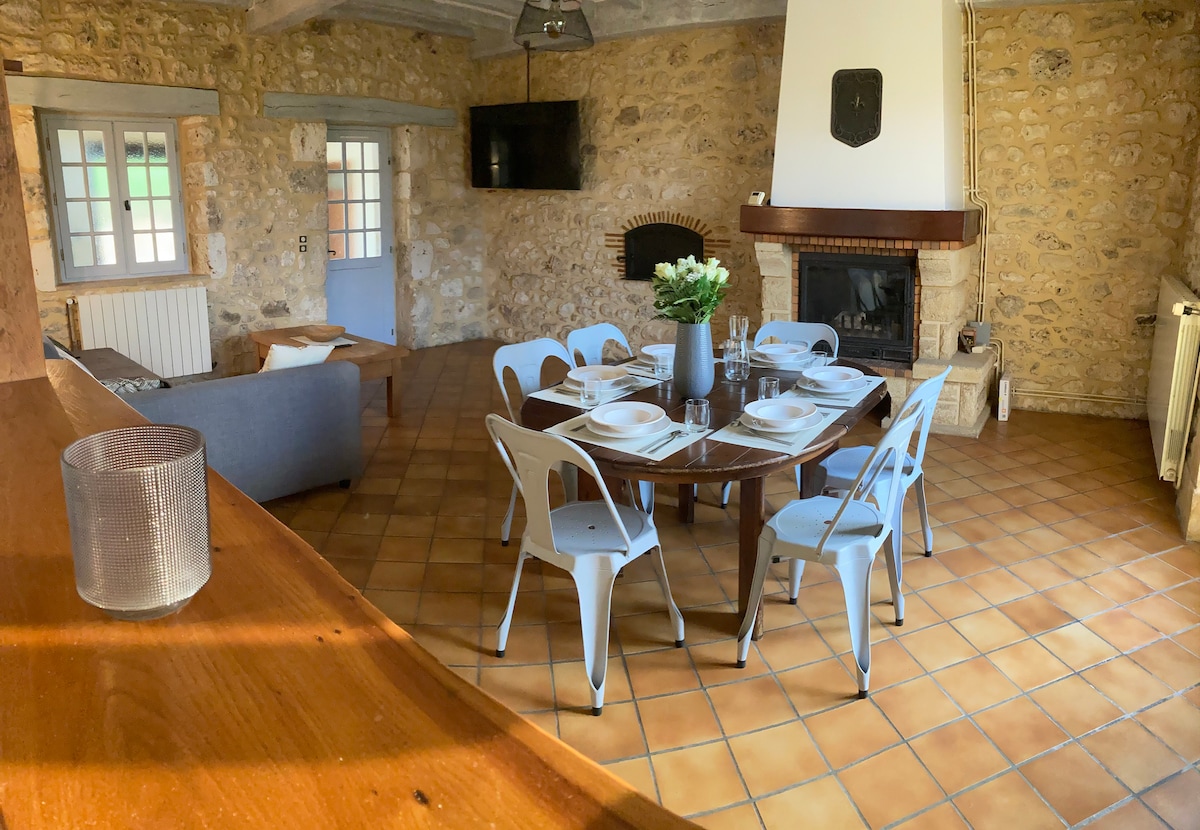 Renovierte Steinscheune in 2 durch einen großen Innengarten getrennten Reihenhäusern. Es ist ein gemütliches Ferienhaus, das ich Ihnen vorschlage, ideal, um sich auf dem Land auf dem Bauernhof auszuruhen. Ruhige überdachte Terrasse mit eigenem Whirlpool für jedes Haus (für Kleinkinder nicht erlaubt) Ideal für 4 Personen oder Paare Schöne Aussicht, sehr ruhige Lage. Viele Aktivitäten möglich: Kanufahren, Spaziergänge in Gabares auf der Dordogne, Schlösser, Dörfer, Höhlen, Museen, Restaurants, Flohmärkte...etc.