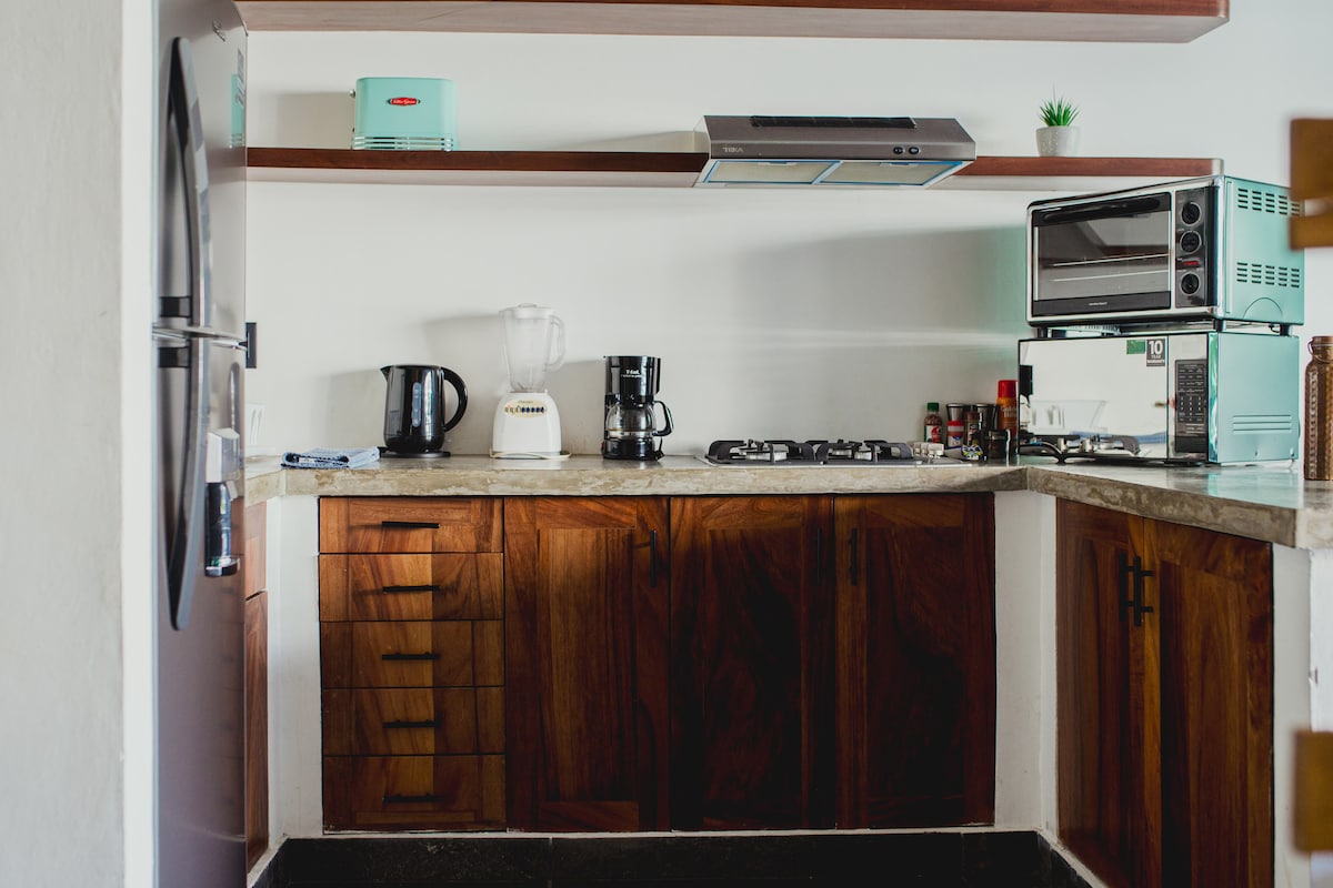 Studios direkt am Meer mit Pool und Zugang zum Strand. 5 Minuten von Punta Mita und Higuera Blanca entfernt. 15 Minuten von Sayulita und 30 Minuten von Bucerias entfernt. 45 Minuten vom internationalen Flughafen ohne Verkehr. In der Nähe der besten Surfspots der Bucht. Mehr als zwei Meilen Sandstrand, der wie die Karibik im Pazifik aussieht, spektakuläre Sonnenuntergänge und gutes WLAN. Familien- und haustierfreundlich. Sie können zu den Marietas-Inseln reisen oder von den nahe gelegenen Dörfern oder La Marina de La Cruz de Huanacaxtle 20 Minuten entfernt angeln.