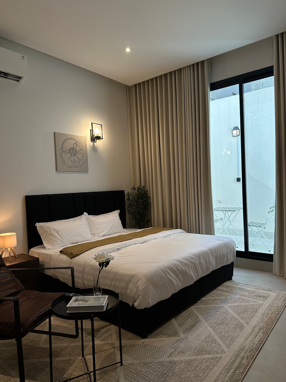استديو أنيق ذو خصوصية تامة ودخول ذاتي ذكي بتصميم فريد ومزيج من الألوان المريحة وخدمات فندقية رائعة، كما يتميز بوجود جلسة خارجية ذات إطلالة جميلة وركن شواء خاص يتيح لك الاستمتاع بالفناء الخارجي ، بالإضافة لوجود مطبخ جانبي صغير يحوي على ثلاجة وغلاية و مايكرويف وفرن سطحي ، يقع في حي العقيق بموقع استراتيجي قريب جداً من بوليفارد الرياض والمطار والمطاعم والعديد من أماكن الفعاليات القريبة والمميزة