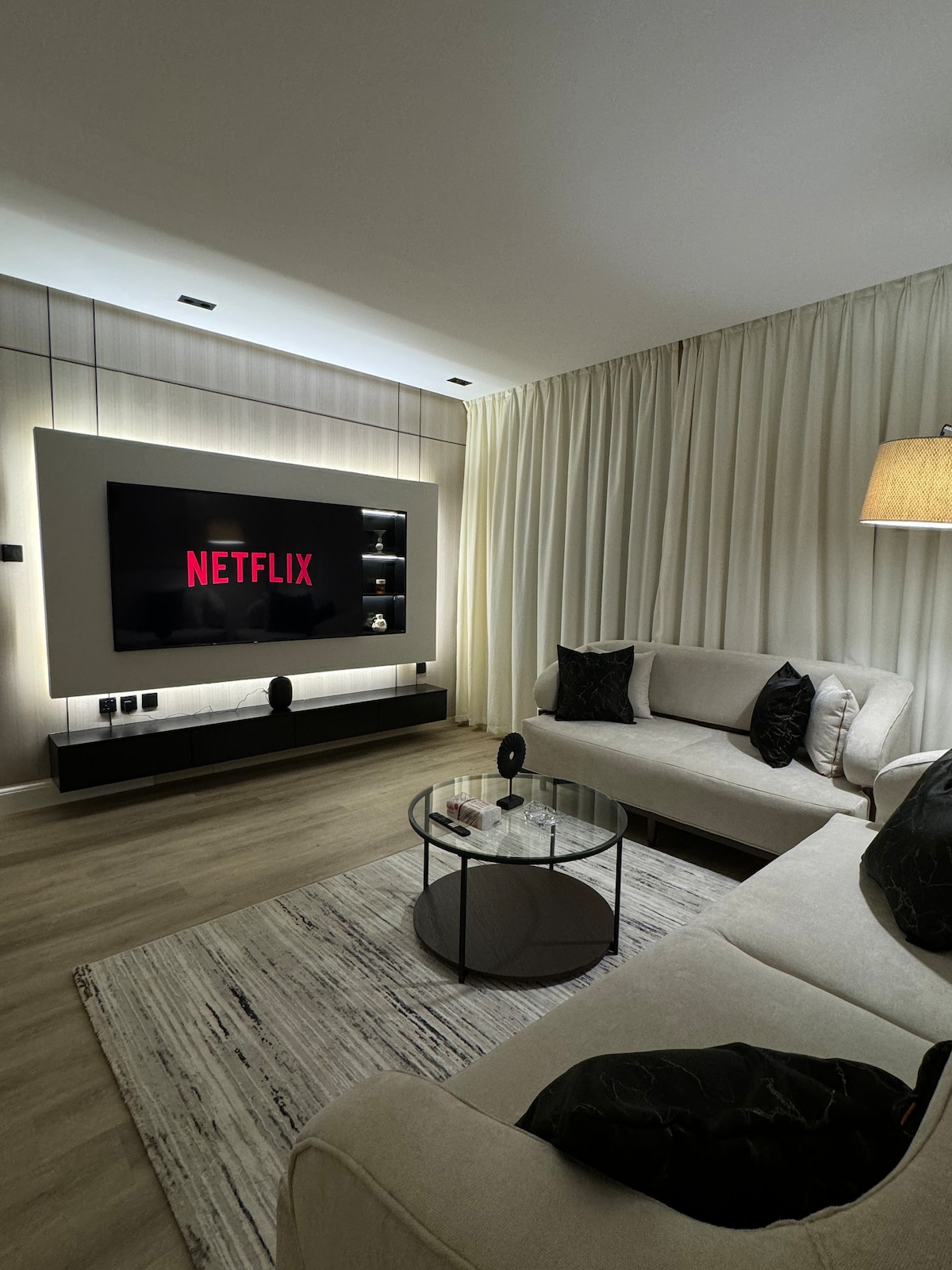 Elegant studio in Al Aqiq District, fully equipped with all amenities, featuring smart entry and a prime location with easy access to Riyadh’s key destinations. 8 minutes from Boulevard 8 minutes from beast land 7 minutes from KAFD 18 minutes from the airport 6 minutes from King Saud University Unlimited High-speed 5G internet available 70 inch screen