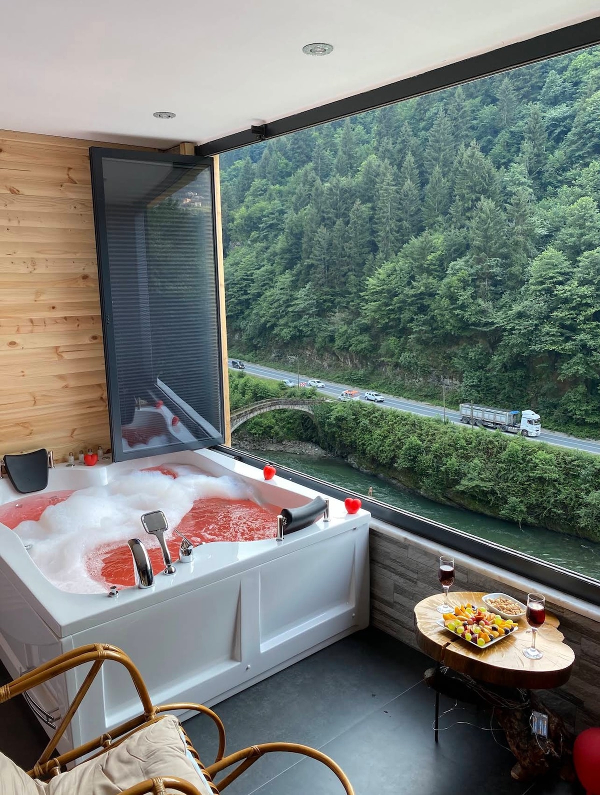 تتحد الحجارة البيضاء الفسيحة المستخدمة في التصميم الداخلي مع اللمسات البوهيمية الحديثة لخلق جو أنيق وهادئ. في حين أن الضوء الطبيعي الذي يرشح من خلال الواجهات الزجاجية الواسعة يجعل الطبيعة جزءا من الغرفة، فإن متعة مشاهدة منظر النهر مباشرة من الجاكوزي الخاص بك تجعل إقامتك لا تنسى. فوق جسر Çamlıhemşin التاريخي مباشرة، يوفر تجربة إقامة فريدة مصحوبة بصوت هادئ للنهر وروح الوادي الخصب. ▪️ الاقامة شاملة وجبة الافطار.