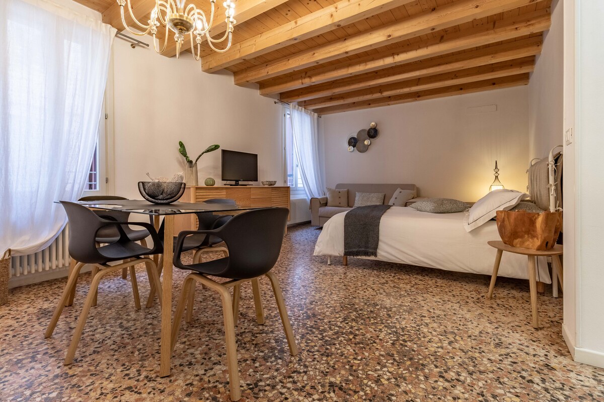 Welcome to Mansarda Dieda, a loft with exposed beams on the top floor of a historic building in the centre of Bassano del Grappa. Just a few steps from the two main squares and the Old Bridge, the apartment is in a strategic location for the main public services (train and bus stations) and, thanks to its super central position, it is perfect for those who want to live where the best bars, restaurants and attractions in the area are located.