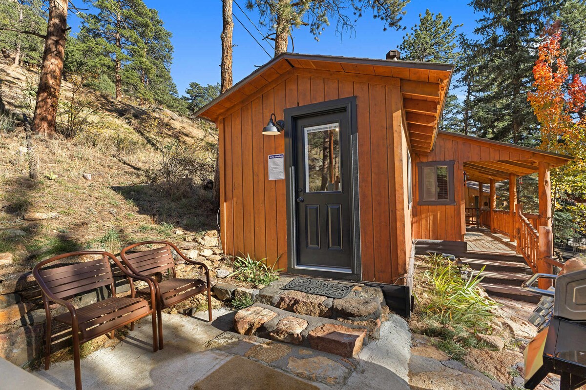 Entspanne dich im Whirlpool des Rockside Hideaway, schlummere in einem Kingsize-Bett unter einem Oberlicht ein, mach es dir vor einem Kamin gemütlich oder spaziere in 15 Minuten zu Restaurants und Einkaufsmöglichkeiten (Genehmigung 3210). Diese historische Hütte hat alles! 15 Gehminuten von der Innenstadt von Estes und eine 5-minütige Fahrt vom Rocky Mountain National Park entfernt. + Privater Whirlpool & Terrasse + Unkomplizierter elektrischer Kamin + Voll ausgestattete Küche + 700 s/f + Hütten-Atmosphäre + Waschküche + Oberlichter + Badewanne/Dusche mit Massagedüsen + Kingsize- und Schlafsofas Ein gemütlicher Ort für bis zu vier Personen!