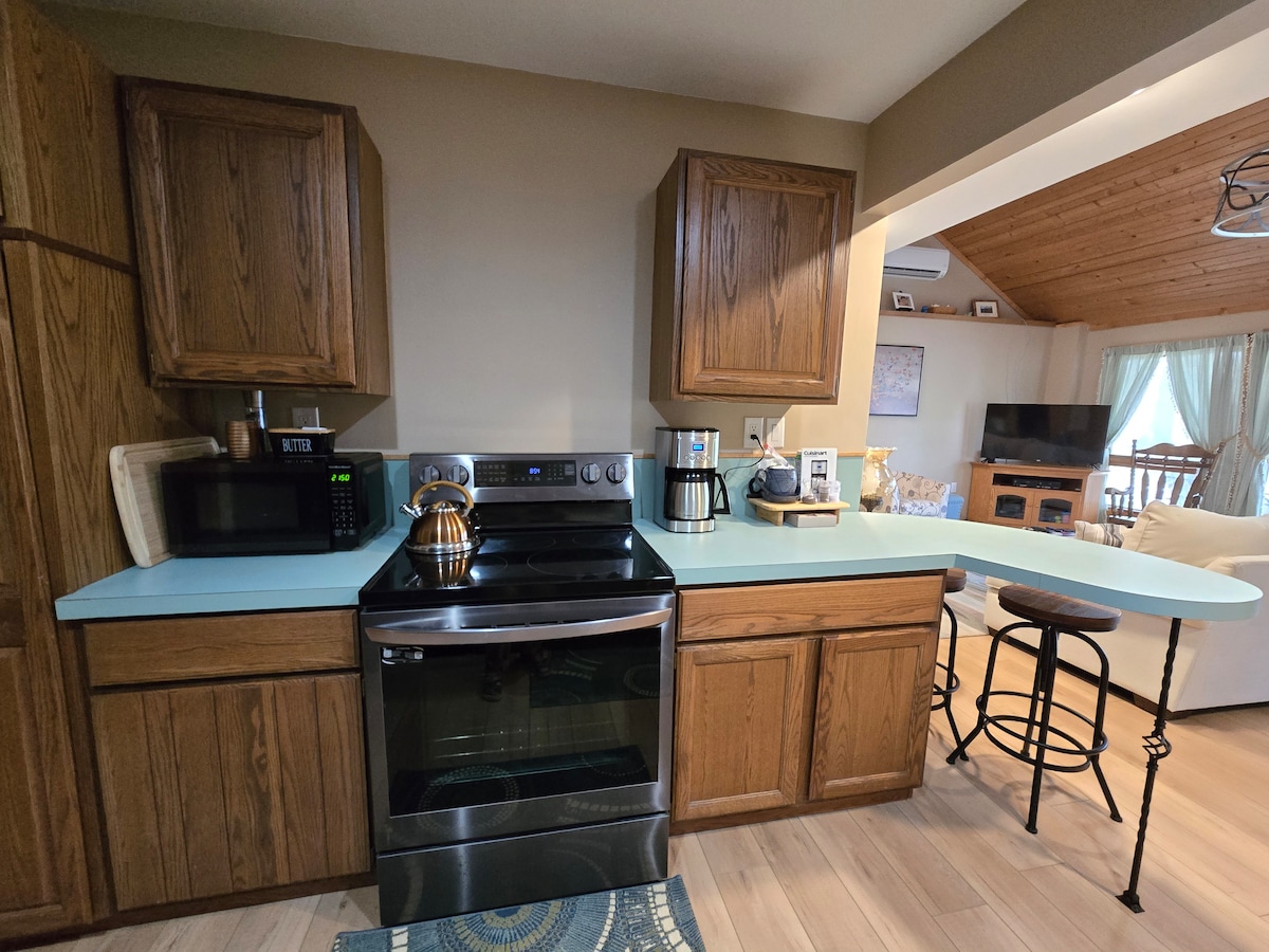 ⸻ Entfliehe in ein ruhiges, privates Ferienhaus am See auf 1,7 bewaldeten Hektar. Mit Kajaks, Paddelboot, Fischerboot, Feuerstelle, schnellem WLAN und einer großen Auswahl an Spielen. Beobachte die Sterne über dem quellenversorgten Townline Lake oder entspanne dich bei einem Besuch im nahegelegenen Weingut. Perfekt zum Schwimmen, Genießen der Herbstfarben, Eisfischen oder für einen gemütlichen Kurzurlaub. Kürzlich renoviert mit einer modernen Küche, Kingsize-Betten, komfortabler Einrichtung und durchdachten Details. Unglaubliches Fischen und unübertroffene Ruhe das ganze Jahr über.